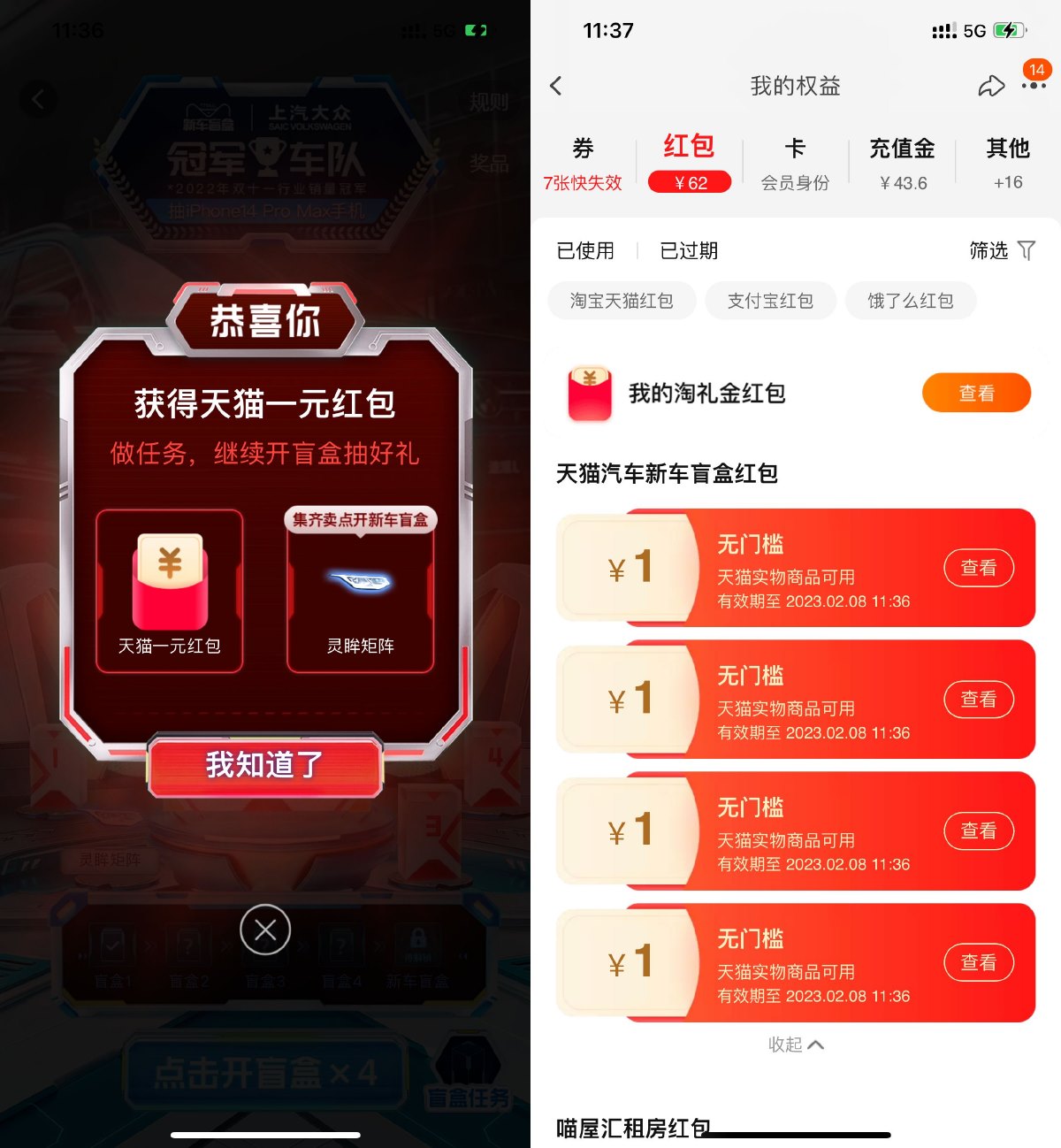 淘宝扫码->简单浏览得5次机会->目前最多可得4个红包,2月5日晚上8点可以开最后一个盲盒