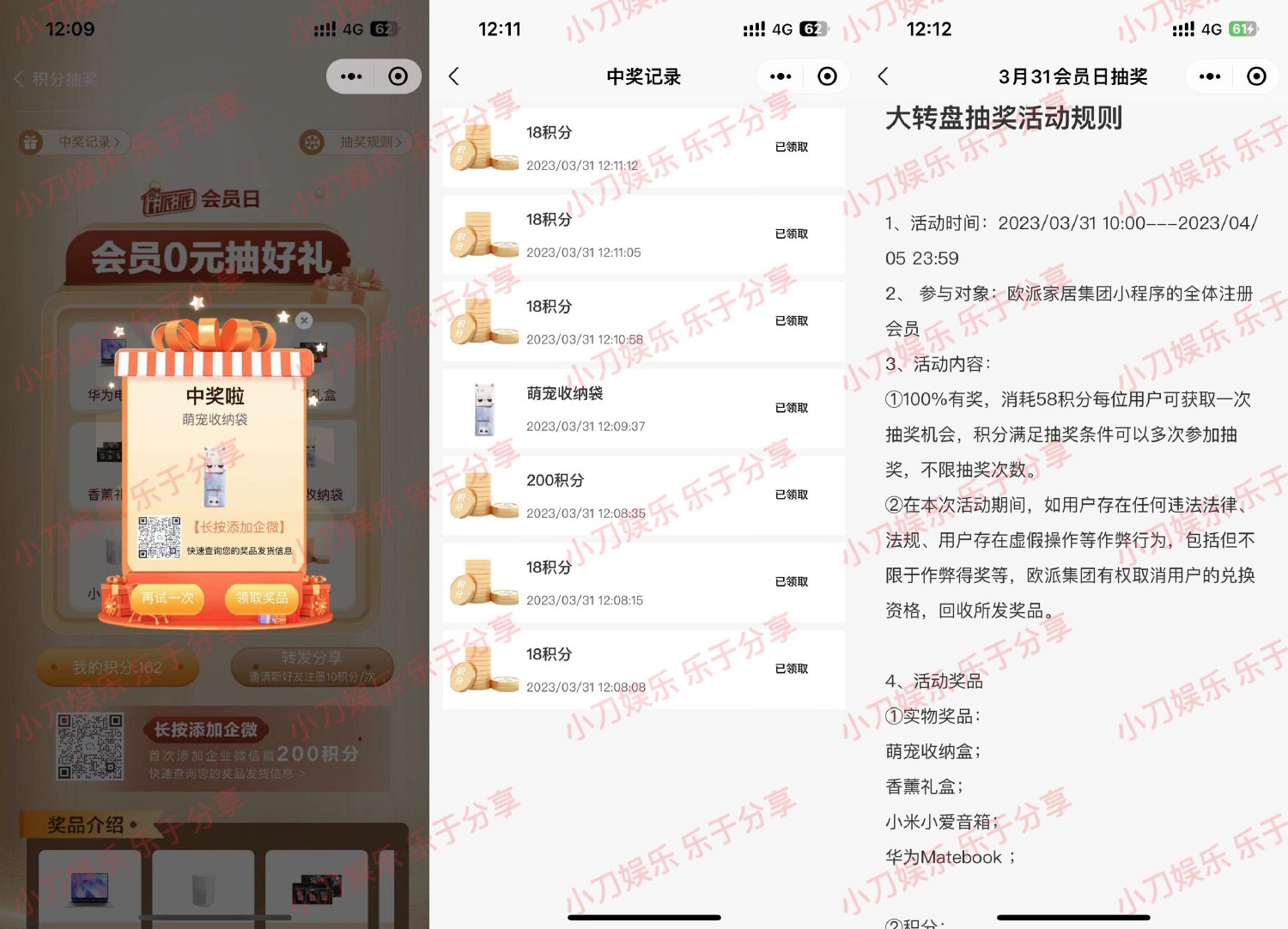 微信打开地址->注册后有100积分,每58积分抽一次实物,抽中实物填写地址领取即可