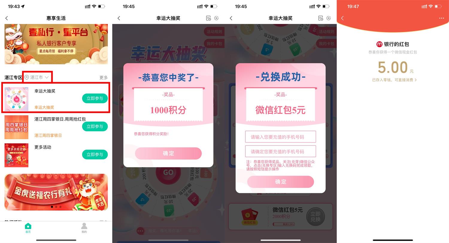 1、农业银行APP->搜索“本地优惠”->位置选择“广东-湛江”->惠享生活->位置再次选择“广东-湛江”