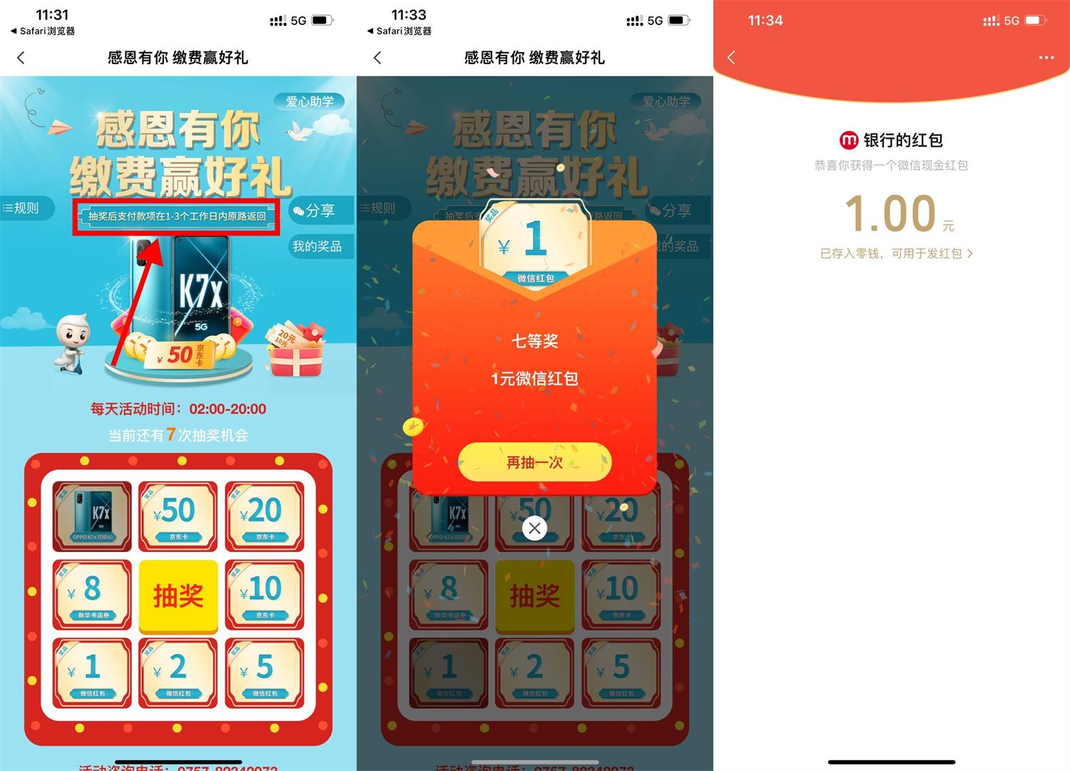 2、7次机会用完->抽中红包复制兑换码->微信打开兑换地址粘贴兑换码领取