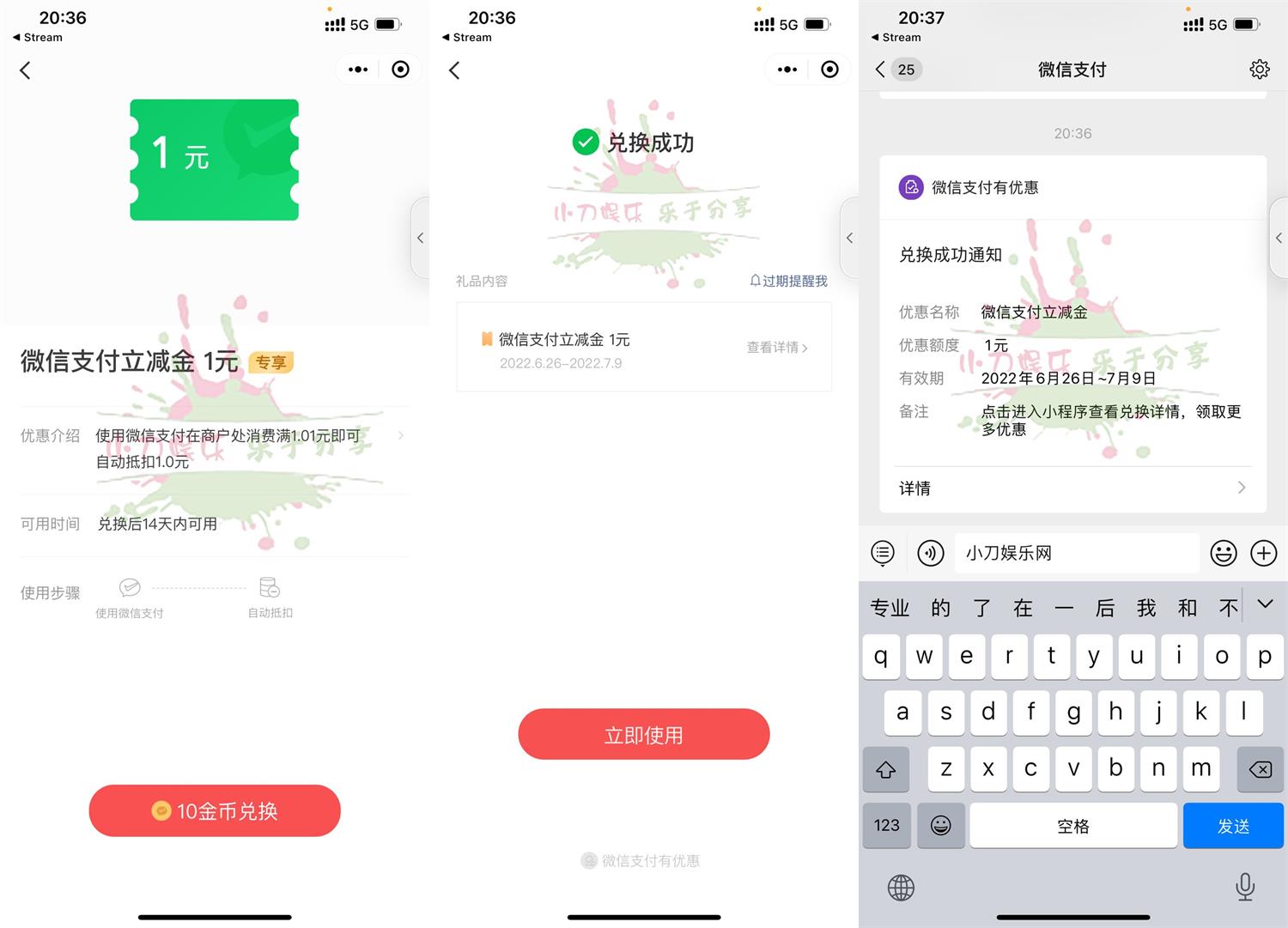 微信扫码进入->使用10金币兑换(金币不够就去左上角首页领一下)->立减金是通用的,使用零钱支付时可抵扣!