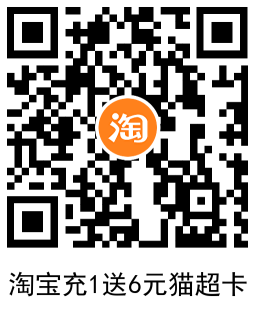 淘宝APP扫码->直接充1元猫超卡送6元(1个月内陆续到)