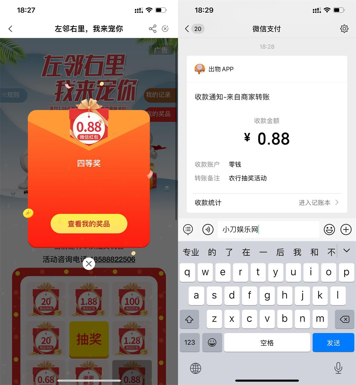 微信打开地址->跳转到农行APP->支付1.08元抽奖,2次机会用完(24小时内自动原路退回,不用担心)->抽中红包复制兑换码,根据页面提示兑换